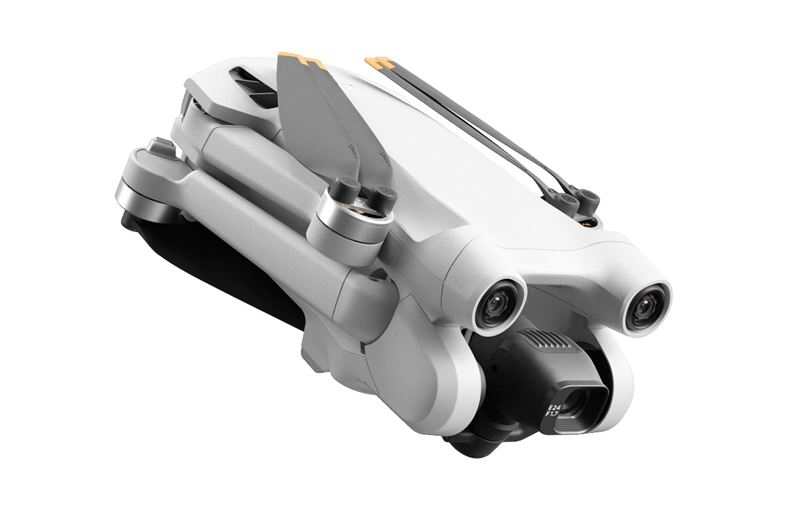 Mini 3 Pro sports a completely new look that is optimized to get more out of every flight. With larger propellers, an aerodynamic body tilt, and a powerful obstacle sensing system, the streamlined design allows for increased flight time and safety.